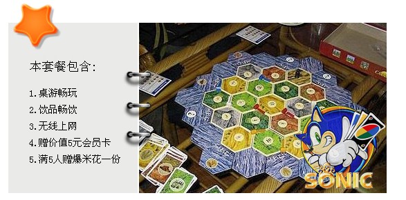 仅售7元!再送价值5元会员卡!原价25元的索尼克桌游畅玩享乐套餐!桌游畅玩,饮品畅饮,无线上网,满5人赠送爆米花一份。所有参加团购的朋友均赠送价值5元的会员卡一张。亲子娱乐、朋友聚会、扩展社交,今夏潮人娱乐首选。
